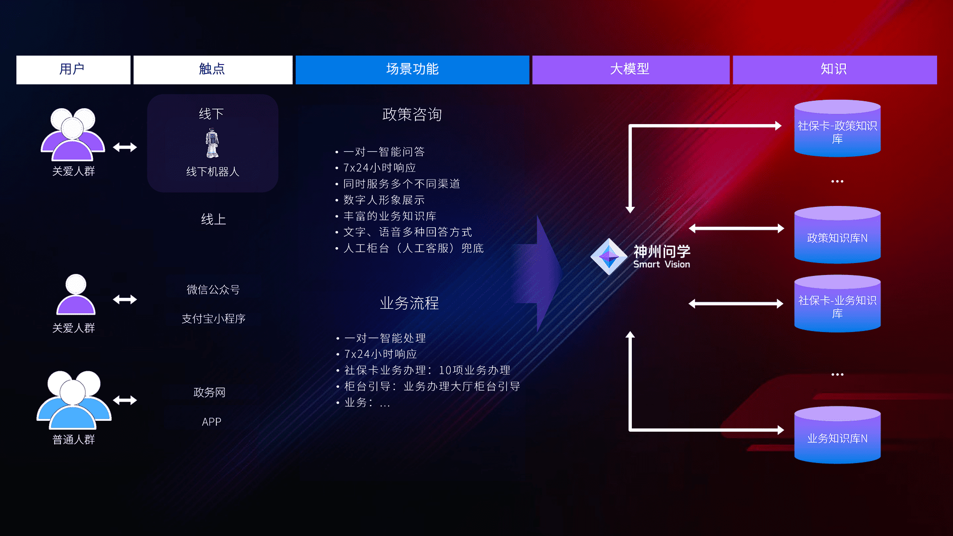 在服务大厅部署客服机器人,,,在线上应用和小程序配置客服数字人,,724小时为群众解答常规问题,,客服机器人无法处理的,,转现场人工处理。。