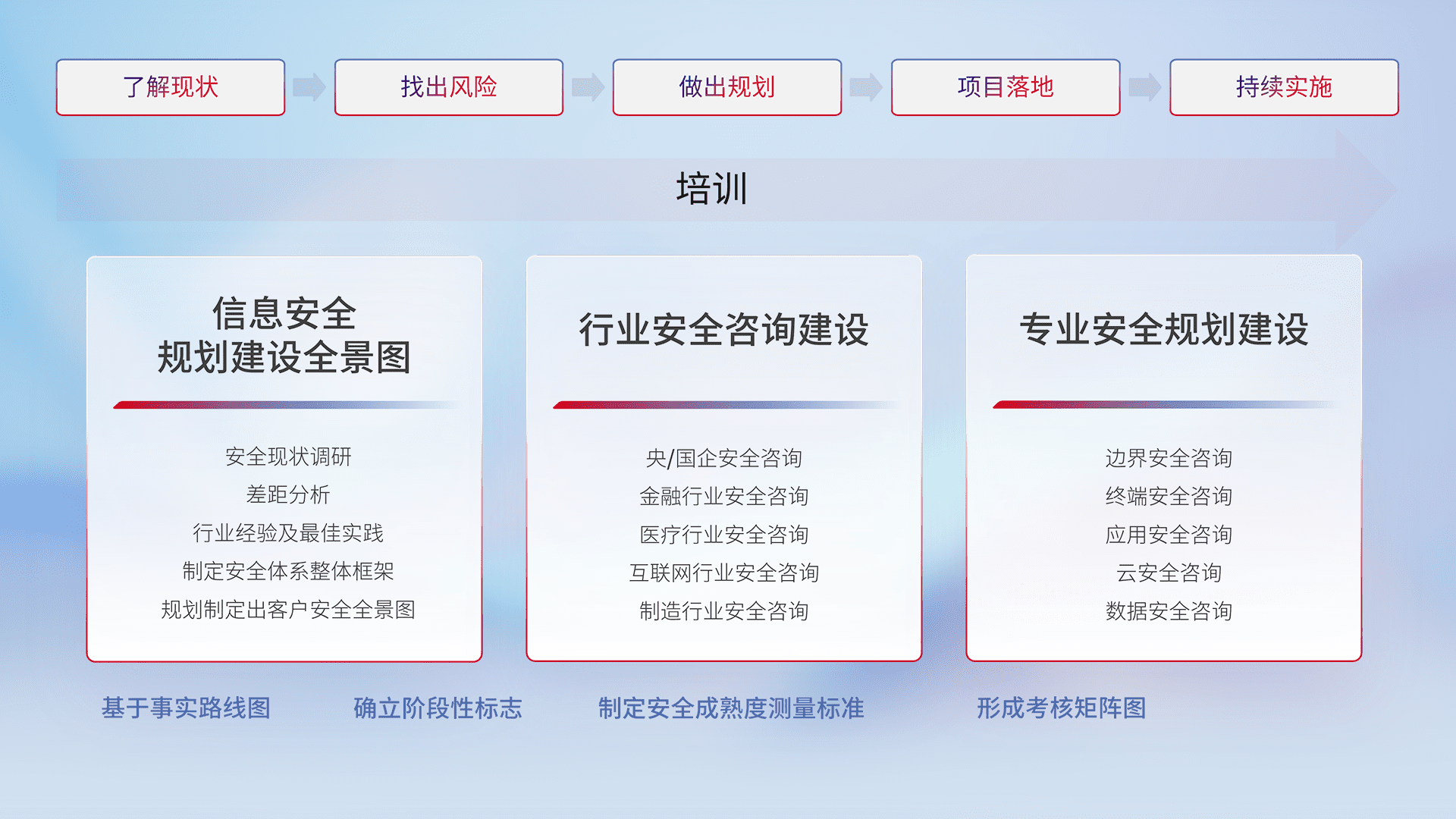 梳理客户信息安全现状调研、、、、差距分析结果,,结合行业先进经验及最佳实践,,制订客户的信息安全管控体系总结架构,,,,最终形成一个完整的客户信息安全规划与建设的全景图。。
